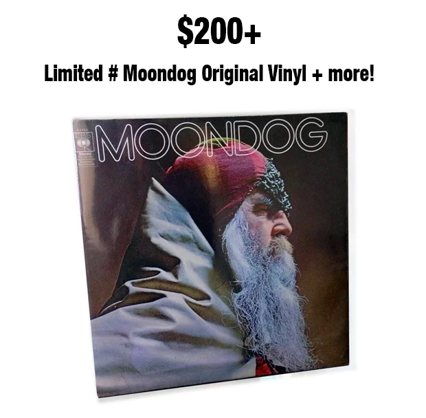 You’ll get an original copy of Moondog’s 1969 Columbia album PLUS a Moondog postcard with a personal note from the director PLUS everything from our $25 MOONDOG MOVIE level. Go to Kickstarter now to get your copy.